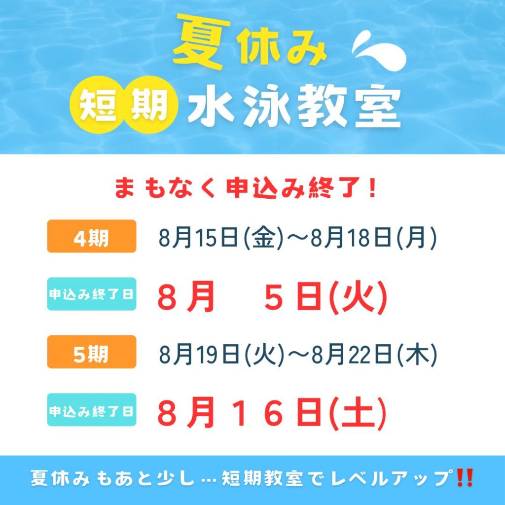 短期教室も残りわずか!!